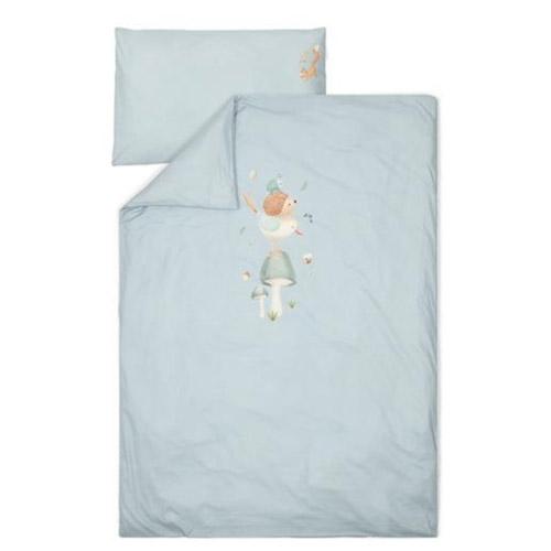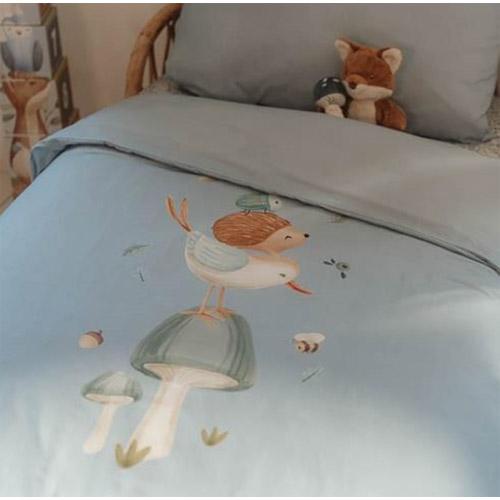 The Forest Friends collection inspires the most beautiful dreams about an adventurous forest in which a bird, hedgehog and beetle balance on a mushroom.