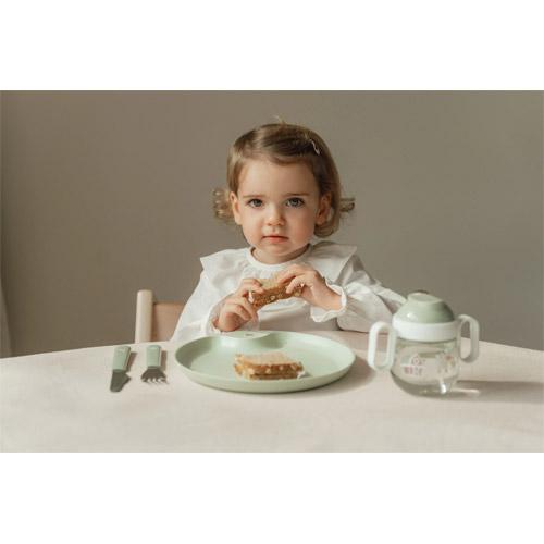 The plate has a handy handle so you don't get your hands dirty when feeding your child.
