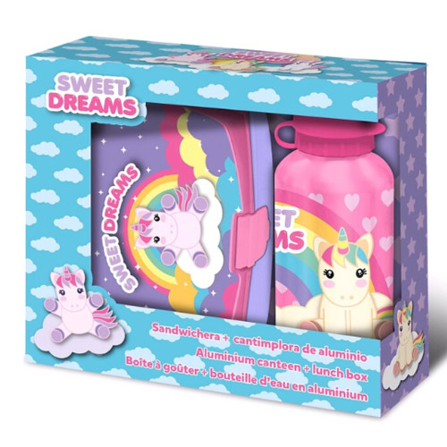 Your lunch break will never have been so much fun with the Sweet Dreams Unicorn lunch box and water bottle.