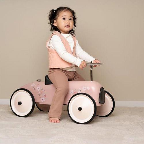 This beautiful Little Dutch Retro Roller walker in pink is based on the style of the Formula 1 cars of the past.