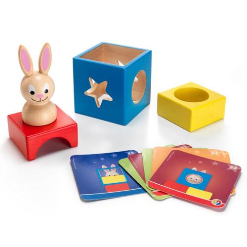 In the box: Wooden rabbit, 3 large blocks, task booklet, leaflet with solutions.