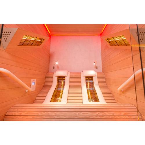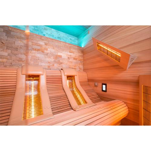 - Chauffages à quartz dans la paroi avant, radiateurs à quartz de forme ergonomique pour l'arrière, chauffage par le sol.