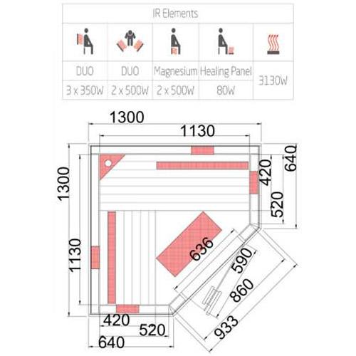 - Radiateurs doubles dans la paroi avant et arrière, radiateur en magnésium pour les jambes et chauffage au sol.