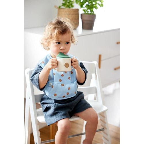 Deux poignées latérales offrent une prise ferme et sûre dans les petites mains et l'anneau antidérapant sur le dessous offre une meilleure adhérence sur la table. Le couvercle est équipé d'une valve anti-goutte pour éviter les déversements.