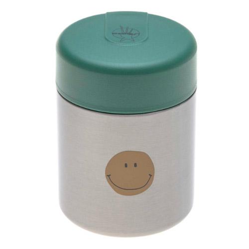 Avec le pot alimentaire en acier inoxydable à double paroi, Smile vert , de la collection Happy Rascals, les eliments sont prêts à être servis sur le pouc.