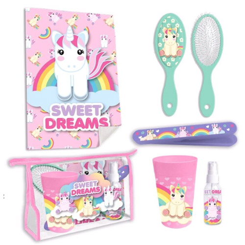 Set de toilette Sweet Dreams Unicorn, un sac de toilette super mignon avec une umage d'une Licorne.