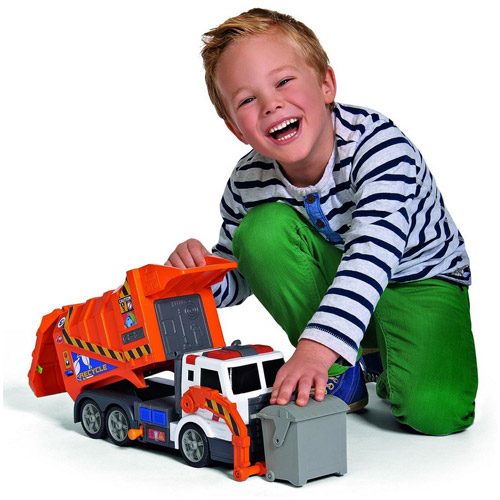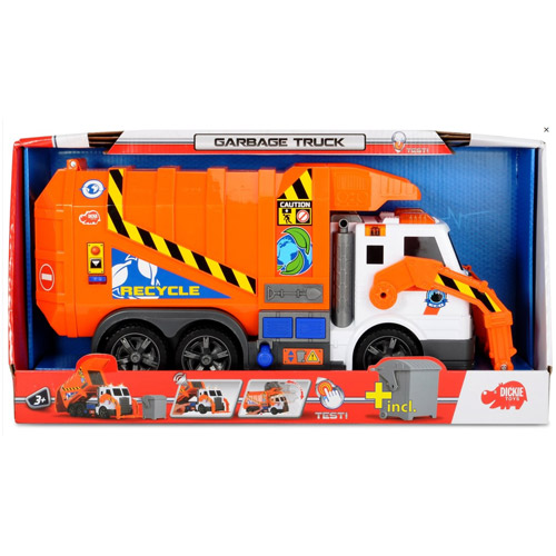 Gardez le monde propre pour tout le monde avec ce camion poubelle Dickie orange avec lumière et son.