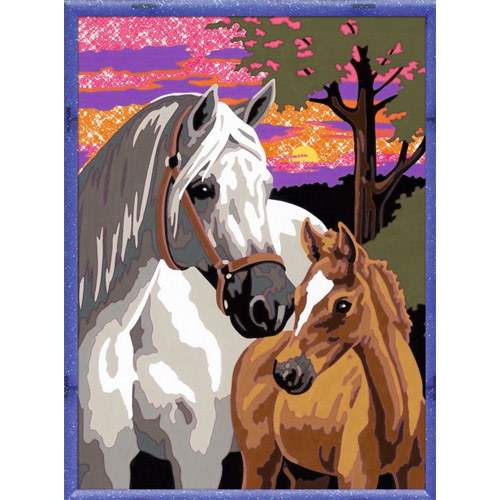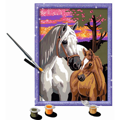 Entraînez-vous pour devenir un des plus grands peintres du monde avec ce kit peinture par numéro chevaux au coucher de soleil de la marque Ravensburger.