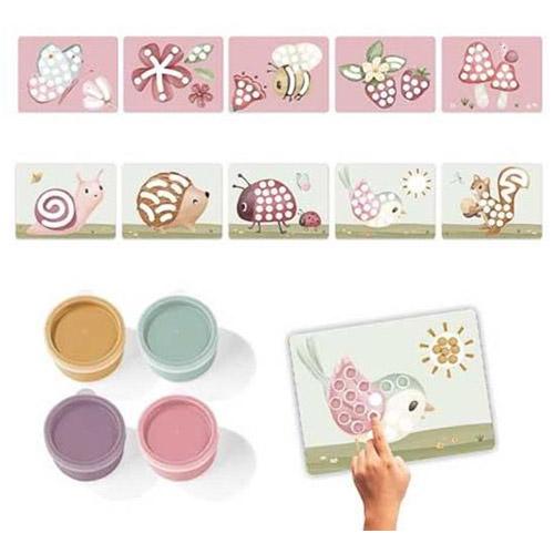 Avec quatre teintes douces et de jolies cartes pré-imprimées représentant, par exemple, une coccinelle ou un beau papillon, votre enfant peut immédiatement commencer à créer les plus belles œuvres d'art.