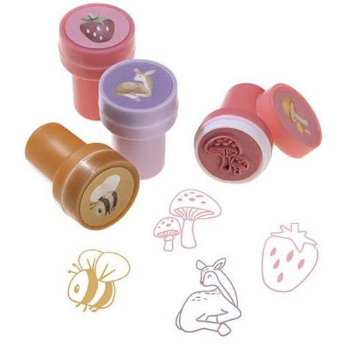 Cet ensemble de tampons contient 16 tampons différents, dont de jolis cerfs, des écureuils et des coccinelles, ainsi qu'une fraise, des fleurs et une abeille.