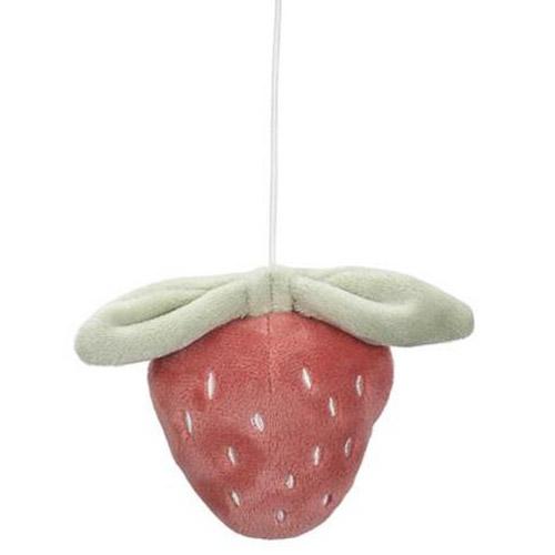 Le mobile comprend cinq jouets de la collection Fairy Garden : un cerf, une fraise, une fleur, un champignon et un oiseau.