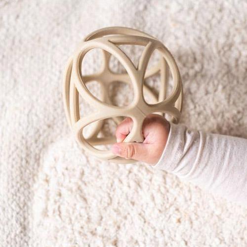 Cette balle sensorielle beige est à la fois douce et flexible.