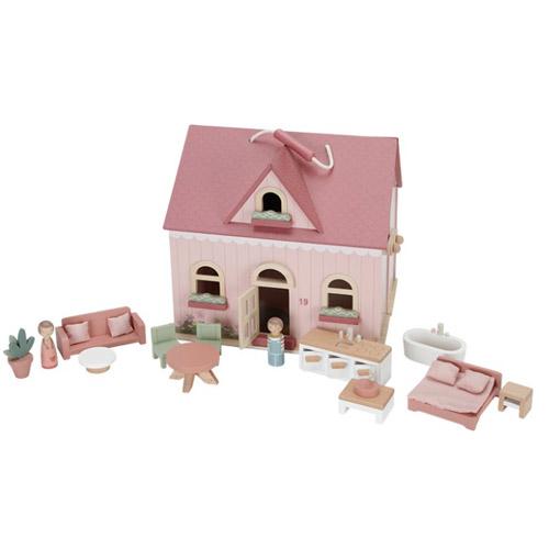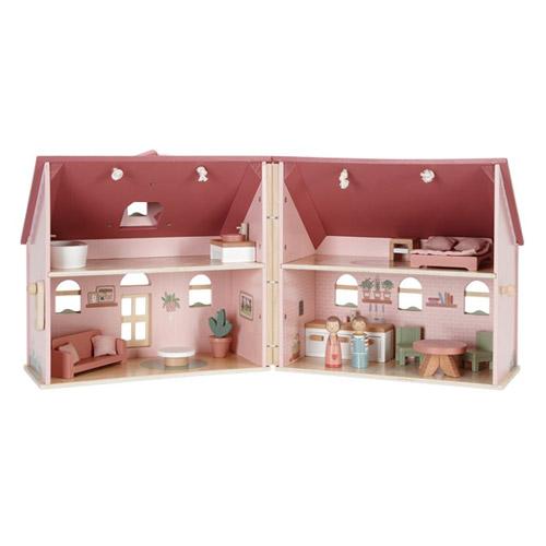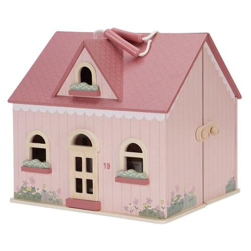 La maison de poupée portable en bois Little Dutch est une maison rose mignonne et confortable avec de beaux détails.