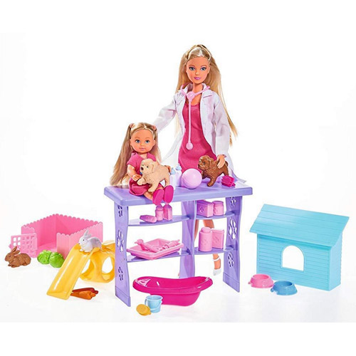 La poupée de Steffi Love joue au vétérinaire accompagnée d'Evi Love.