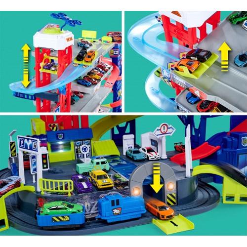 Marjorette parkeergarage met 6 verdiepingen, voor kinderen vanaf 5 jaar, met speelgoedauto's, trein, lift, geluiden en lichten.