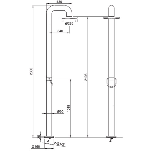 Jee-O Fatline 01 douche extérieure, robinet à sens unique, acier inoxydable brossé