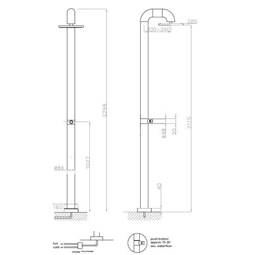 Jee-O Fatline Push douche extérieure, robinet à sens unique, acier inoxydable brossé