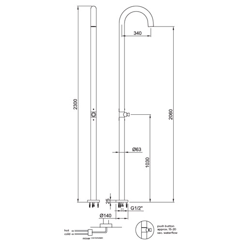 Jee-O Original Push douche extérieure, robinet à sens unique, inox brossé