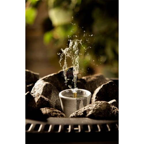 L’évaporateur d'arômes Sisukas est placé entre les pierres du sauna sur le four, la fontaine du sauna, l'évaporateur est rempli d'eau et d'arômes.