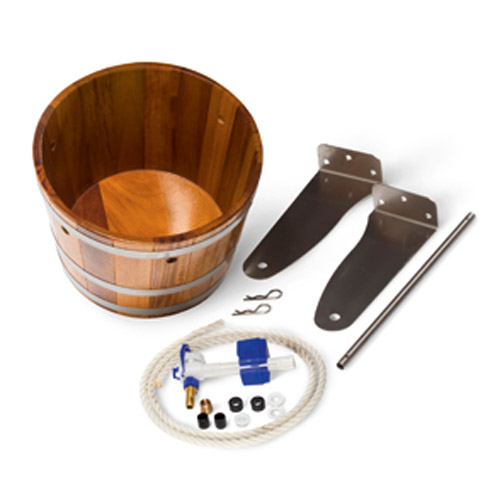 - Contenu en eau réglable sur le robinet de remplissage (de 5,5 à 15 litres), grand seau de 29 litres en bois de Kambala.