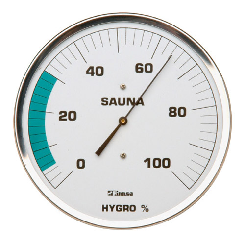 Plage de mesure du sauna: en couleur contrastée (vert).Boîtier en acier inoxydable.