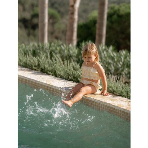 Cet ensemble deux pièces, avec un haut de bikini à volants, est parfait pour les deux!