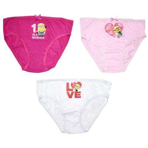 Set de 3 slips filles avec des images des minions, que nous connaissons tous des films populaires Moi, Moche et méchant.