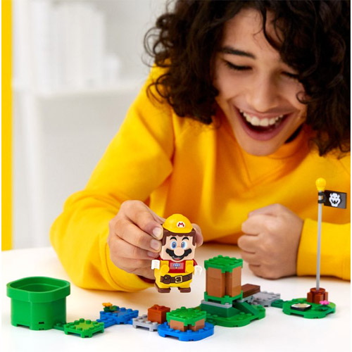 Les joueurs de Lego Super Mario peuvent frapper des briques pour augmenter leur score avec le Costume Mario ouvrier (71373).