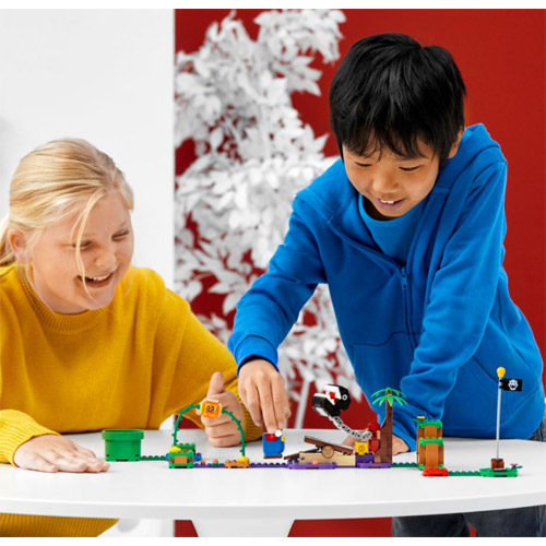 L'ensemble d'extension la rencontre de Chomp dans la jungle permet d'ajouter un niveau de la jungle Cassis à l'univers Lego Super Mario.