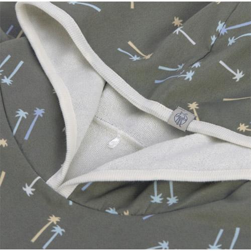 Le poncho de bain UV douillet pour enfants au design Palms deep olive avec protection UV 80 vous garde merveilleusement au chaud après avoir éclaboussé.