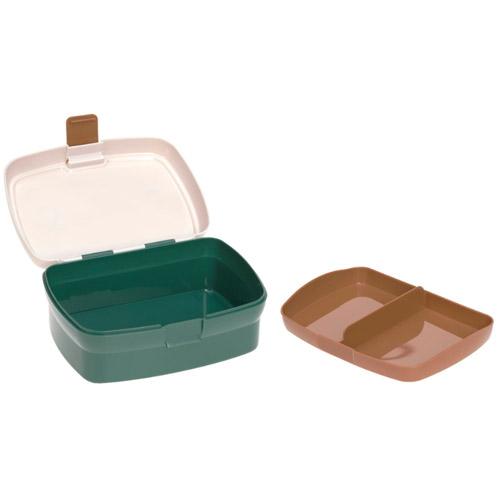 La séparation pratique maintient la boîte à lunch bien rangée, le plateau supérieur offre de la place pour les fruits et les petites collations, le compartiment en dessous est continu et offre suffisamment d'espace pour les sandwichs et les petits pains.