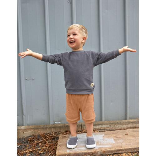 Même les plus petits sont élégants dans le short en éponge LÄSSIG de la ligne Cozy Terry Wear.