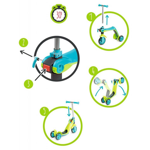 Passez d'une draisienne 3 roues à une patinette 3 roues 3 roues en un instant, sans outil.