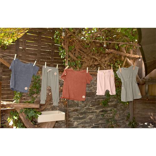 Grâce à la teneur élevée en coton biologique, le tissu absorbe l'humidité.