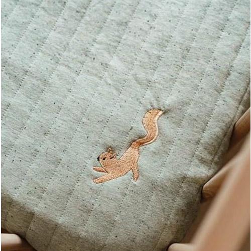 Le devant est en coton biologique avec des rayures matelassées pour un look contemporain et un joli détail d'écureuil brodé.
