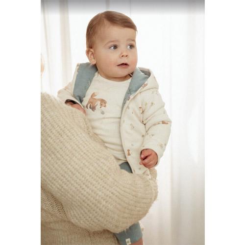 Fabriquée avec un bouton pression, en coton biologique doux et légèrement rembourrée pour plus de chaleur, cette veste réversible assure chaleur et confort à votre nouveau-né.