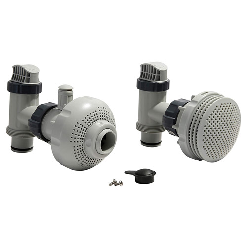 In- en uitlaatset 38 mm met afsluitkranen van Intex ter vervanging van uw bestaande door slijtage of verlies.