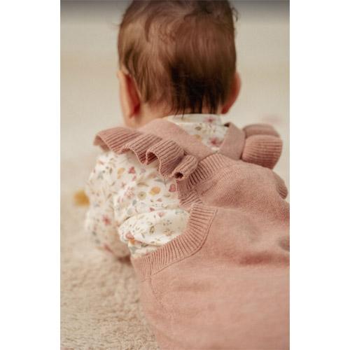 De schattige ruches op de schouders voegen een speels accent toe aan het ontwerp, terwijl het delicate bloemetjesborduursel aan de voorkant het geheel nog zoeter maakt.