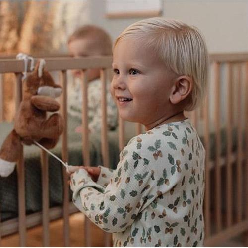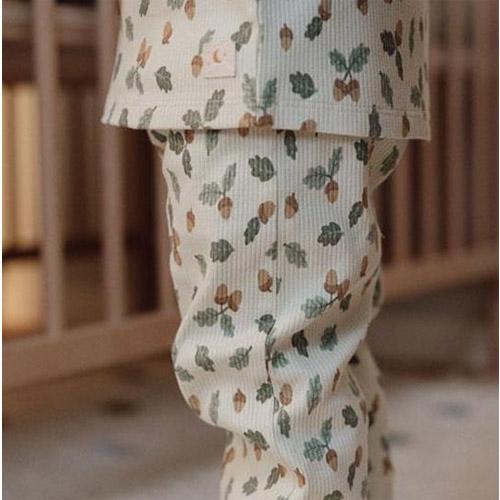 Gemaakt van comfortabel ribmateriaal hebben zowel het shirt als de broek een prachtige print van eikeltjes en blaadjes die de essentie van het bos weerspiegelen.