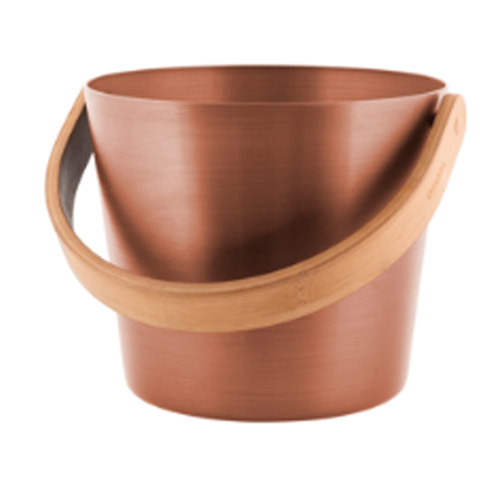 Stijlvolle sauna emmer vervaardigd van geanodiseerde aluminium en warmte-behandeld bamboehout.