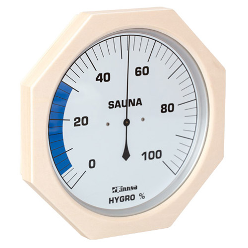 Deze hygrometer is zelfs in de grootste saunacabines goed afleesbaar.