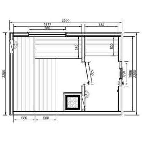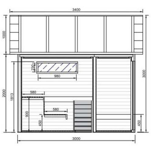 Buitensauna COMFORT 220 cm x 300 cm x 300 cm