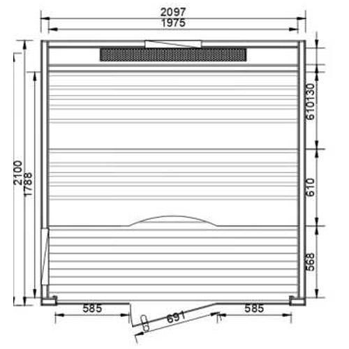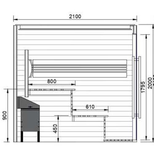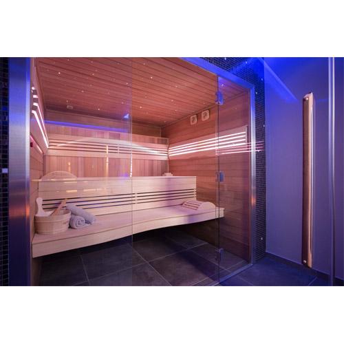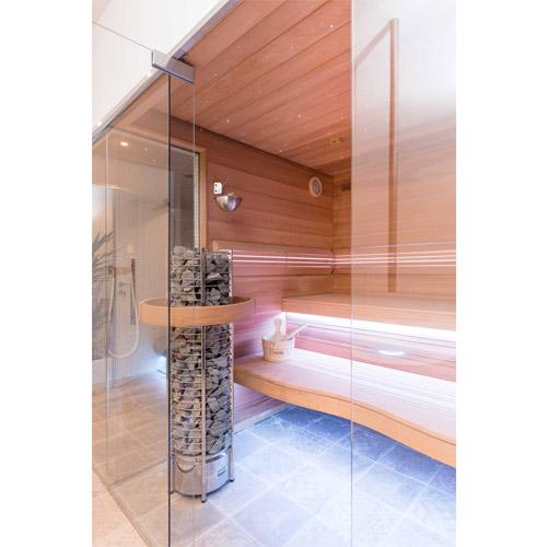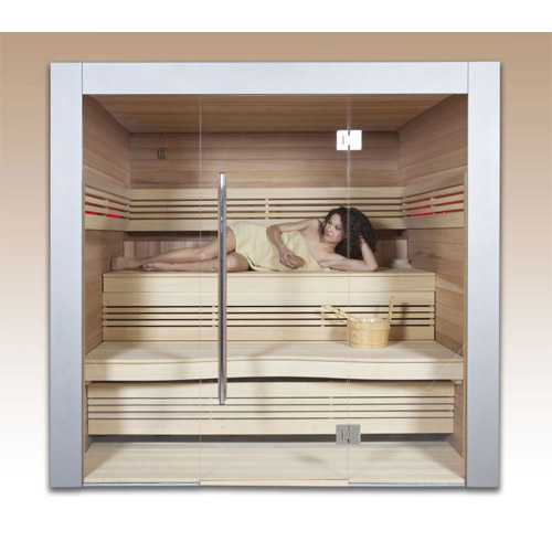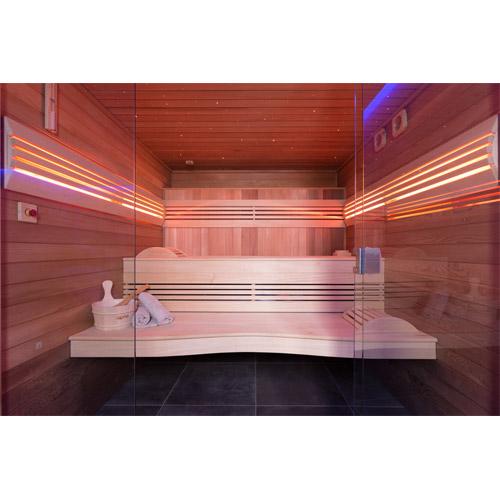 Sauna INTENS met glazen voorwand 210 cm x 210 cm x 198 cm