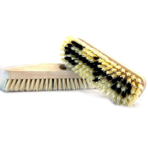 Zo kunt met deze borstels groene aanslag wegschuren van paden of tuinmeubilair, de rug van de schuurborstel bestaat uit  hout in de vorm van een anker met een opening voorzien voor eventueel een borstelsteel.
