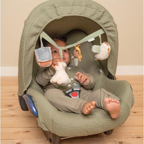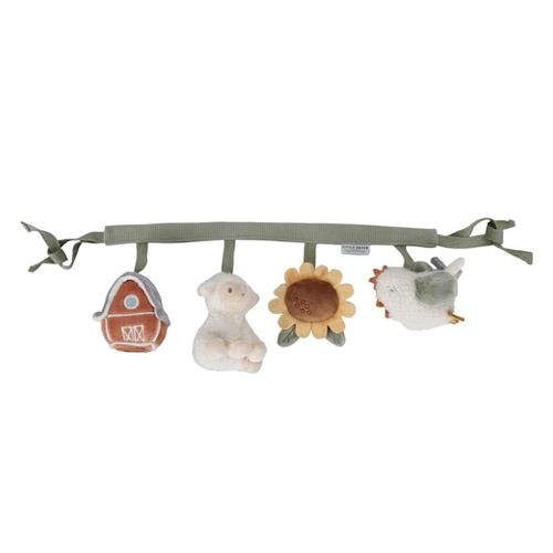 Deze Little Dutch wagenspanner met de vriendjes van de boerderij is eenvoudig te bevestigen aan een autostoeltje of kinderwagen en zorgt onderweg voor veel speelplezier en vermaak dankzij de speeltjes met de rammelaar, spiegeltje, knijptoetertje en knisper.