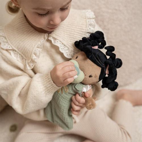 Deze lieve pluche pop van Little Dutch wil graag geknuffeld en verzorgd worden.