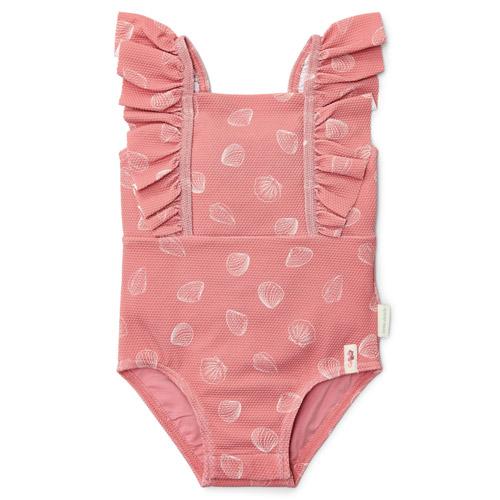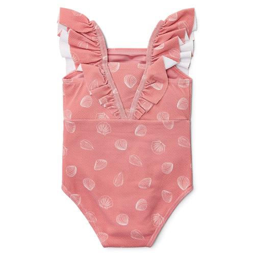 Je kleine diva zal dol zijn op dit badpak in limonade-roze versierd met een speelse print van witte schelpen.