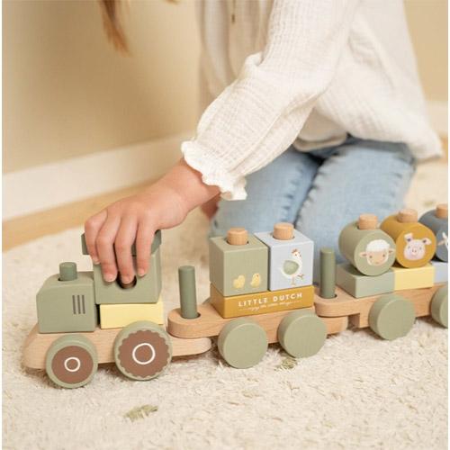 Blokkentrein tractor Little Dutch Little Farm OP=OP