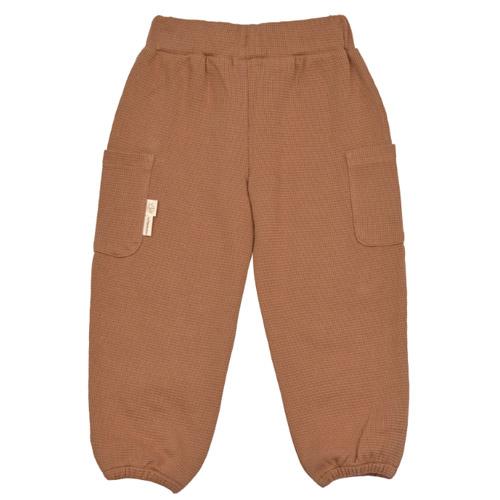 De kindercargobroek met wafelmotief is prachtig te combineren met de vele coole kledingstukken en accessoires uit de Little Gang-collectie.