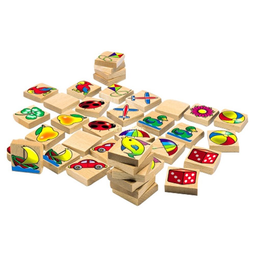Zoek als eerste de juiste houten plaatjes van de verschillende figuren bij elkaar en win het Eichhorn memory spel!